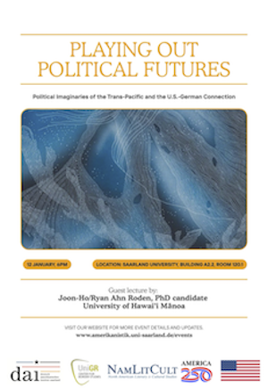 Joon-Ho/Ryan Ahn Roden is a PhD Student with the Department of Political Science at the University of Hawaiʻi at Mānoa – specializing in areas of Indigenous Politics and Alternative Futures – and a visiting scholar with the North American Literary and Cultural Studies program at Saarland University. His talk delves into the practices of play in designing political futures, looking into the limits of political realities they embody, and how a decolonial imaginary can be fostered and centered for the future of U.S.-German Cooperation.